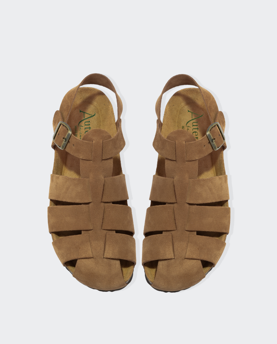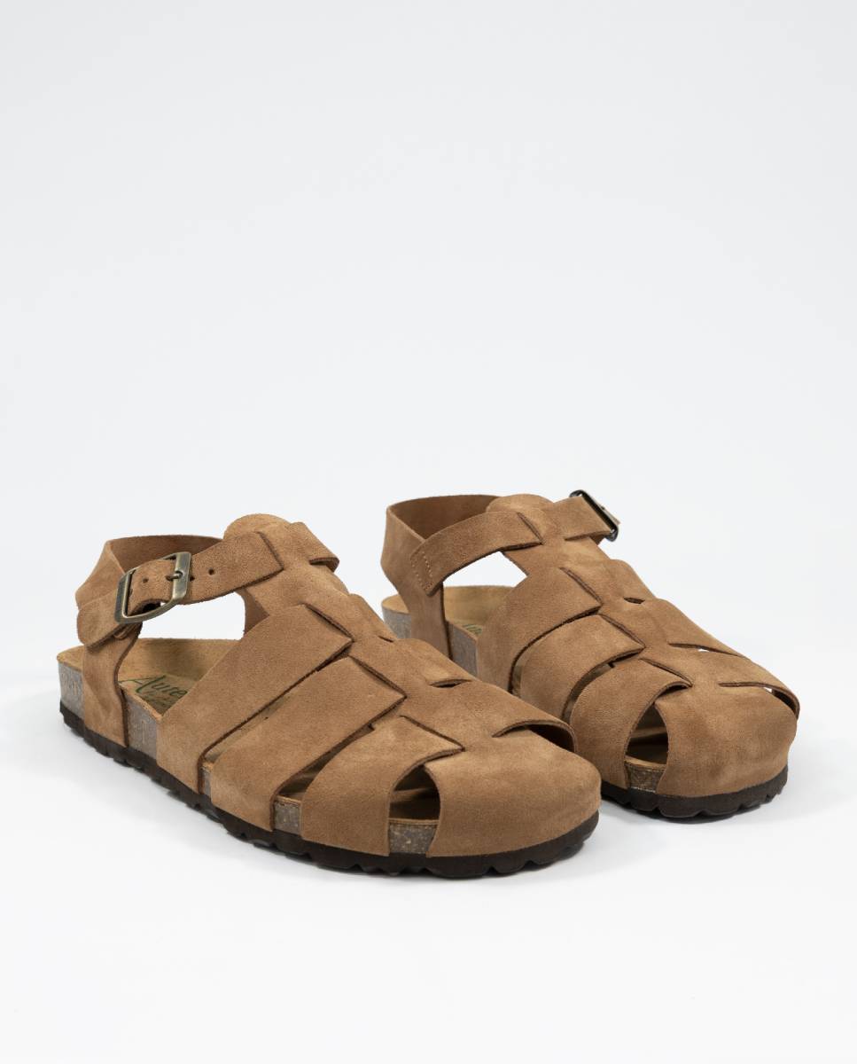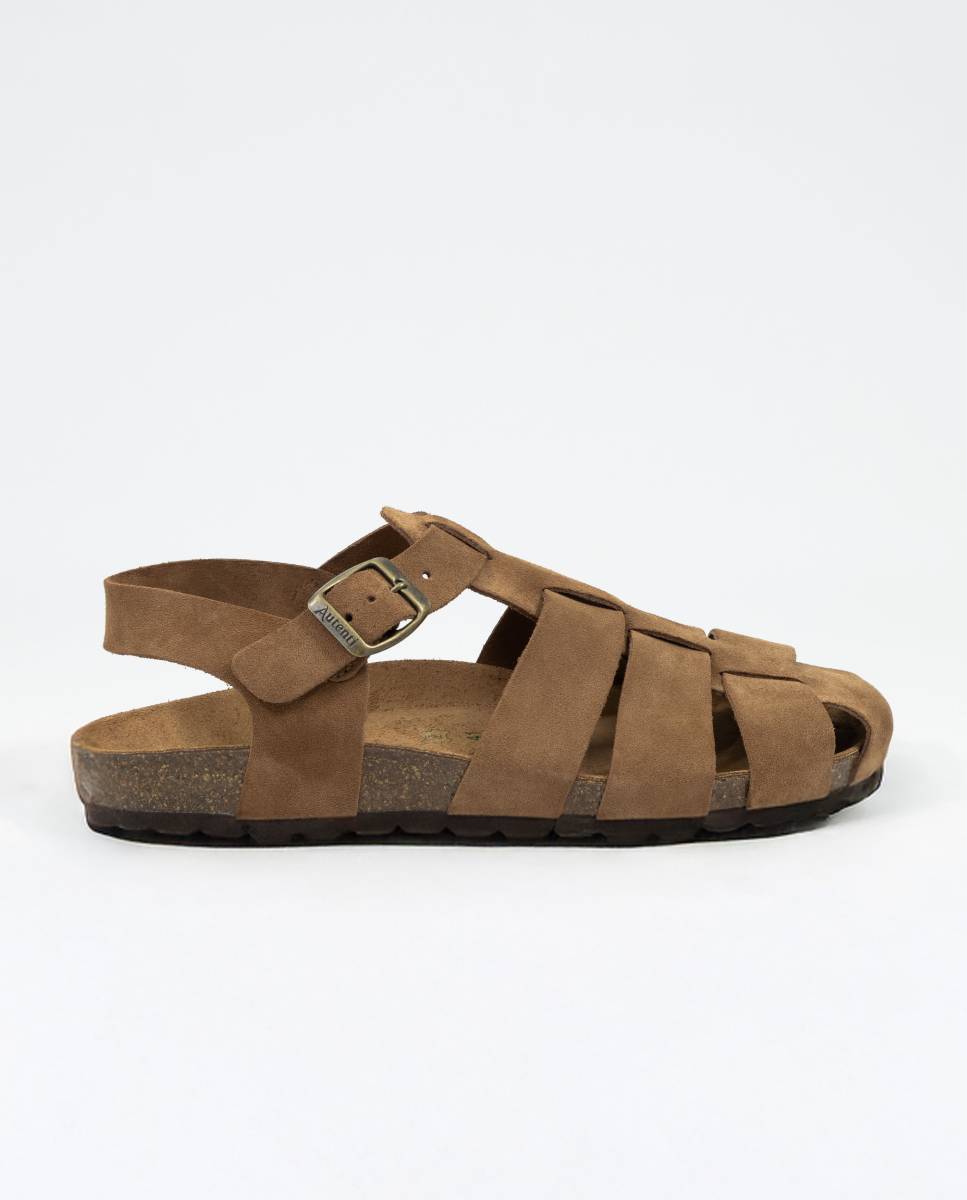 Modelo Autenti cangrejera cerrada. Fabricado a mano en piel serraje y hebilla lateral con talón para un mayor ajuste. El serraje es un tipo de piel natural que puede sufrir pequeñas variaciones en el tono. Disponible en dos colores.