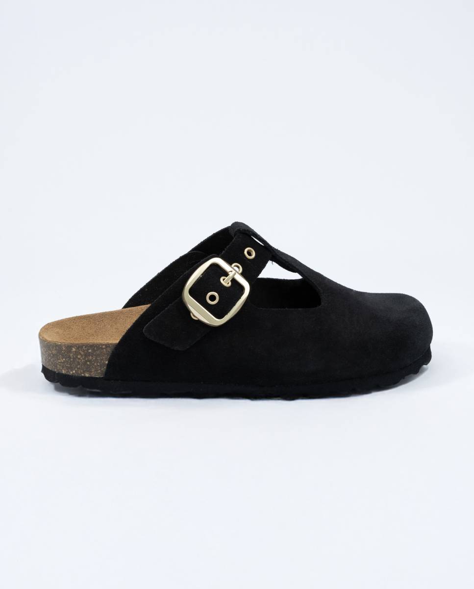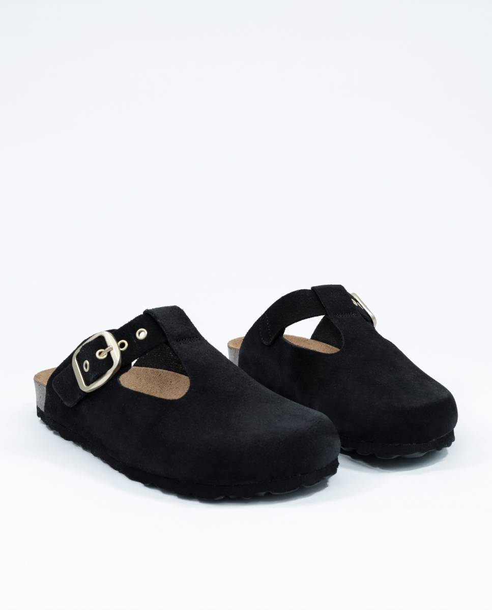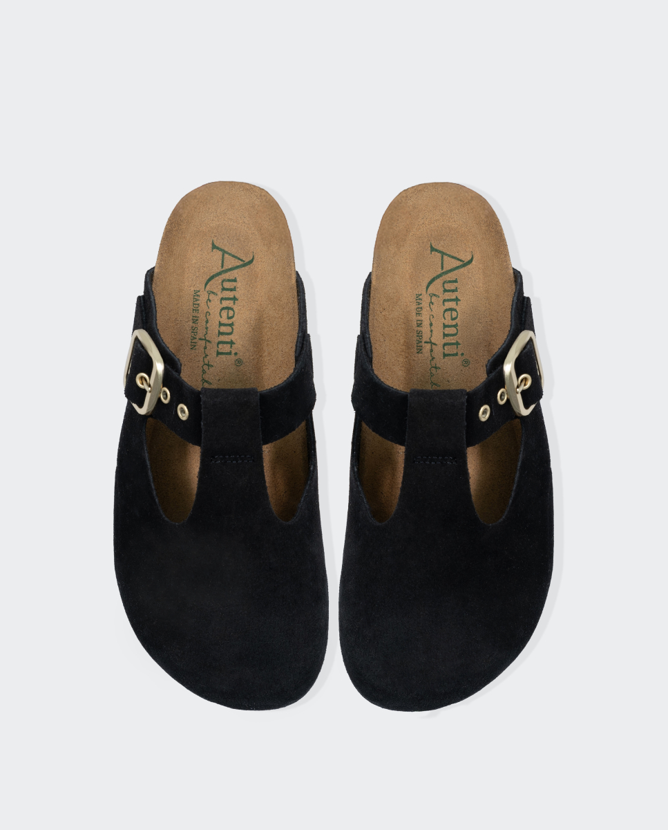 Modelo Autenti bio zueco. Fabricado a mano en piel serraje con hebilla mate lateral ajustable y ojales al tono. Disponible en cuatro colores. El serraje es un tipo de piel natural que puede sufrir pequeñas variaciones en el tono.